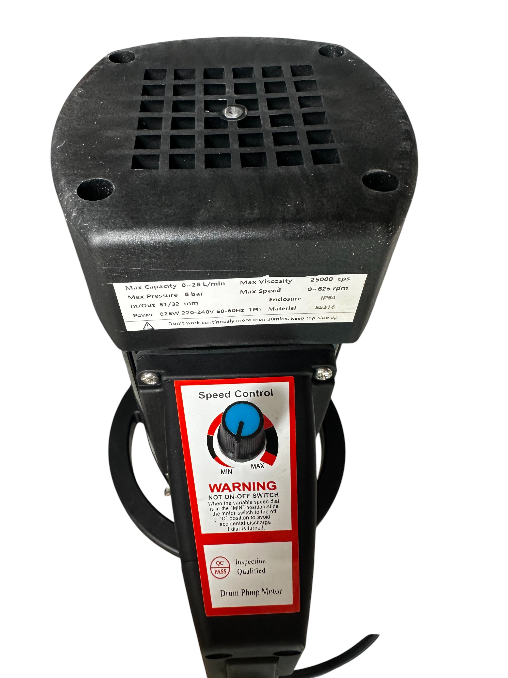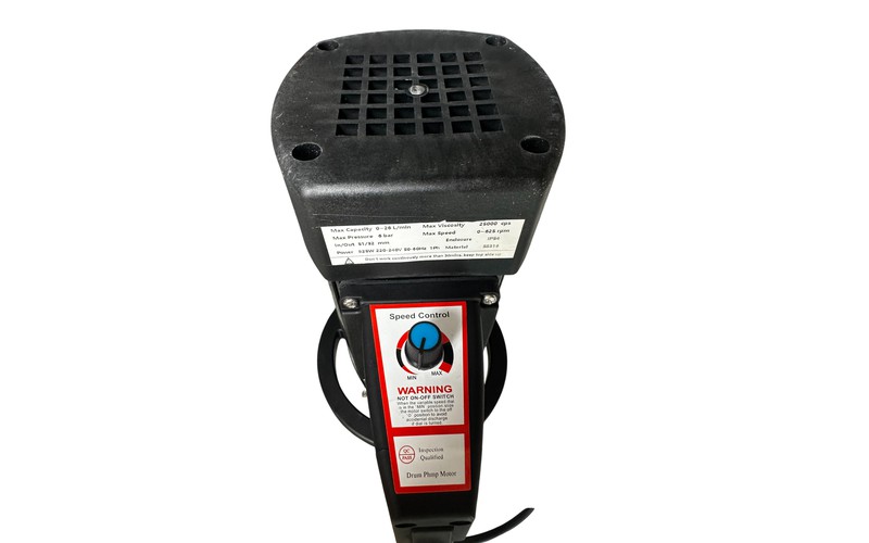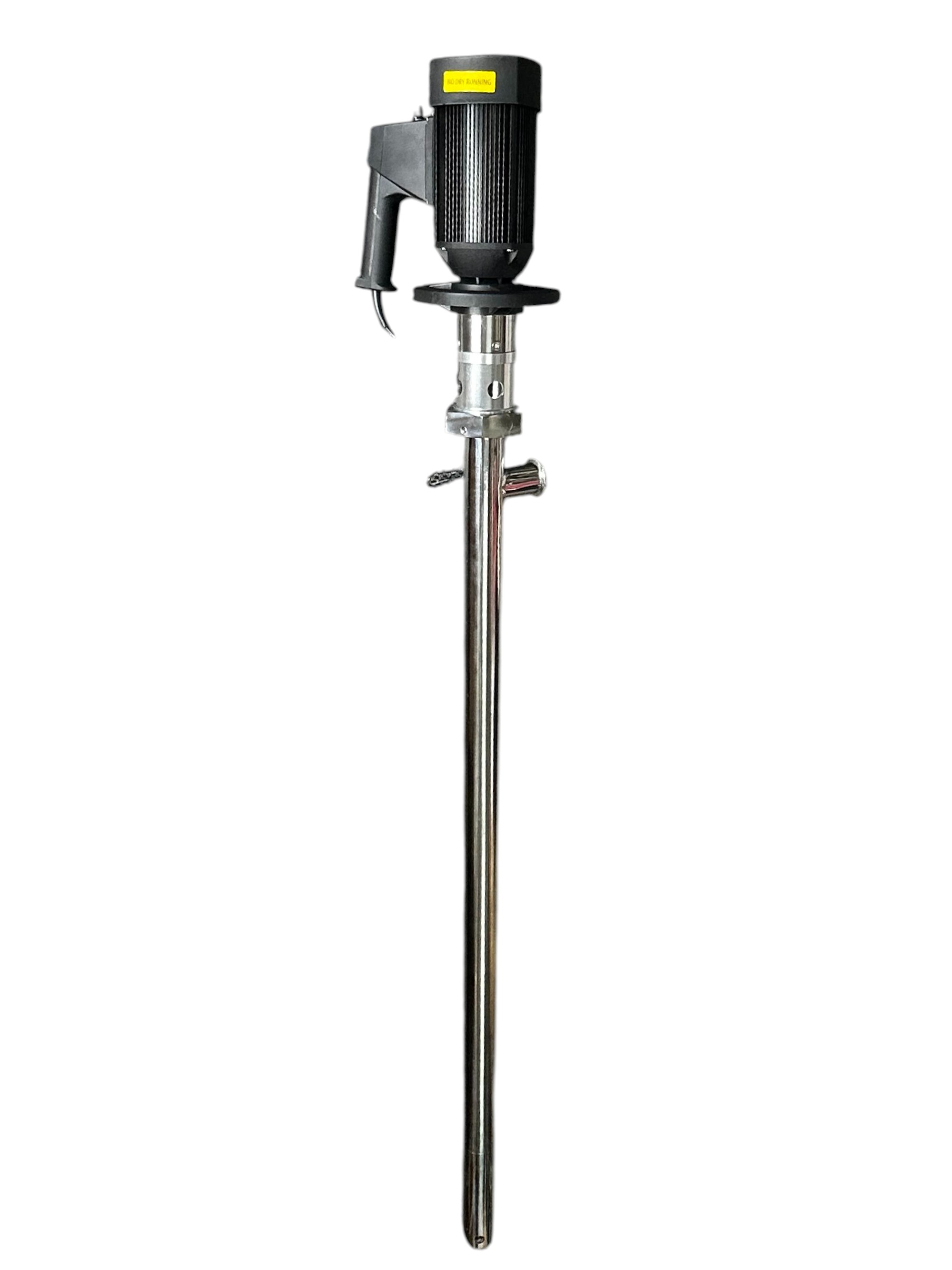An electric motor above the drum drives the pump, with optional variable-speed control to fine-tune the flow rate. The progressive cavity design provides strong suction and steady discharge, helping to empty drums efficiently while minimising aeration and foaming. Wetted parts are typically 304 or 316L stainless steel with food-grade elastomers and sanitary hose connections.