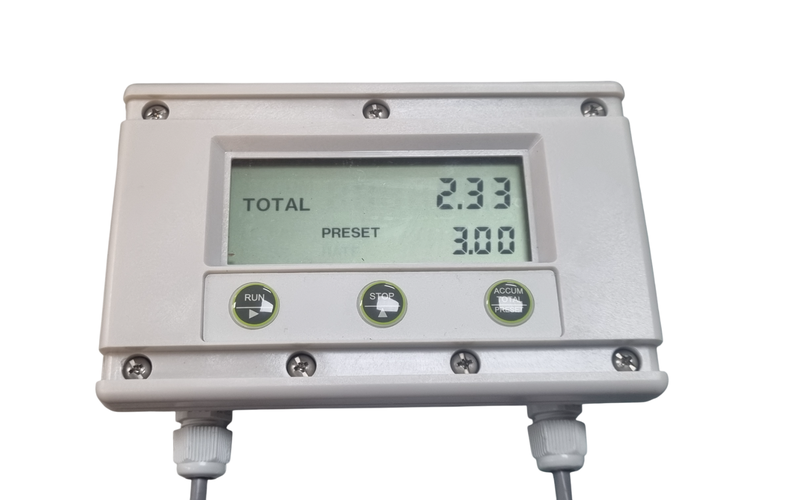 These units take a flowmeter or other pulsed input and provide a staged output control, to allow for a slowdown setting as the target is approached (providing a more accurate stop point, avoiding water hammer) and also with program controls allowing for a soft start for flow.