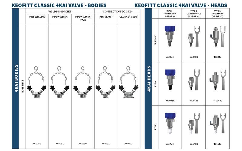 Keofitt 4Kai valves are applicable in situations between 1-100 cP and particles less than 1.5mm in diameter. These valves are an upgrade to the Basix series allowing for steam sterilisation.