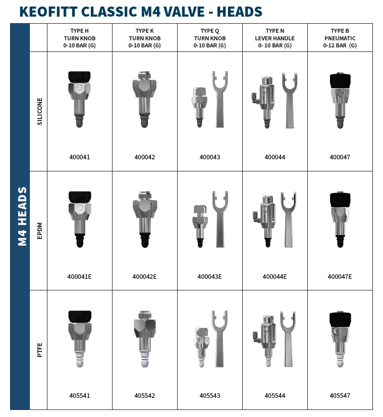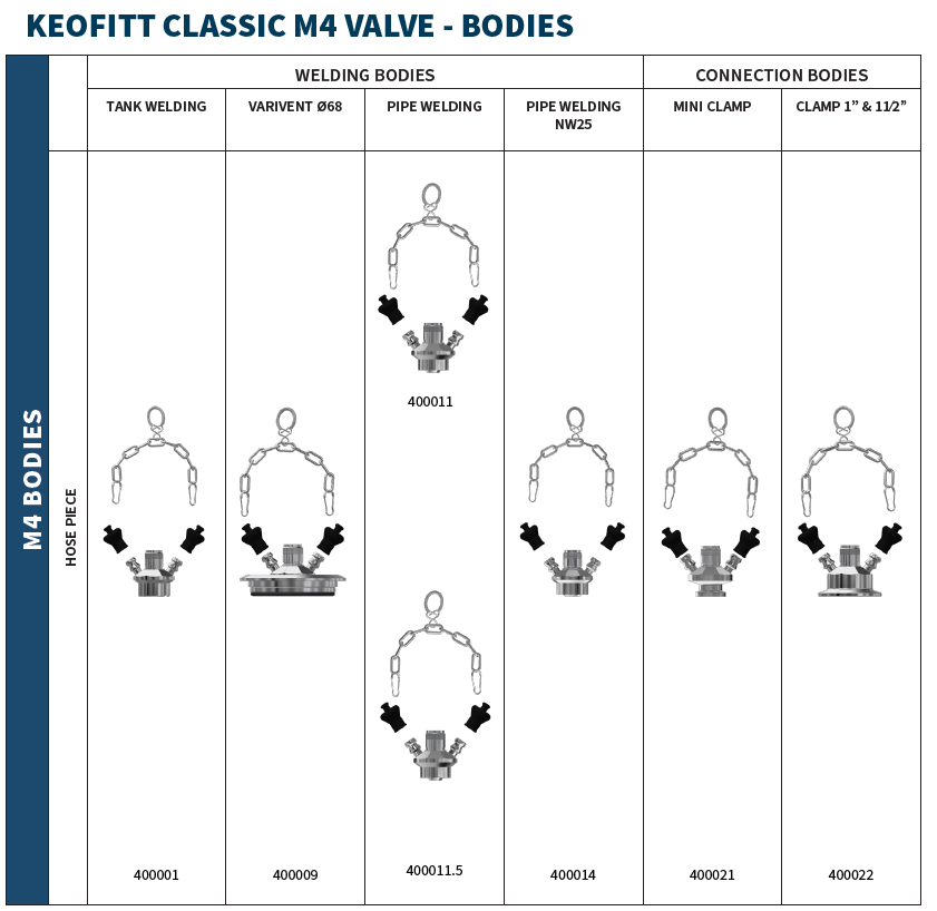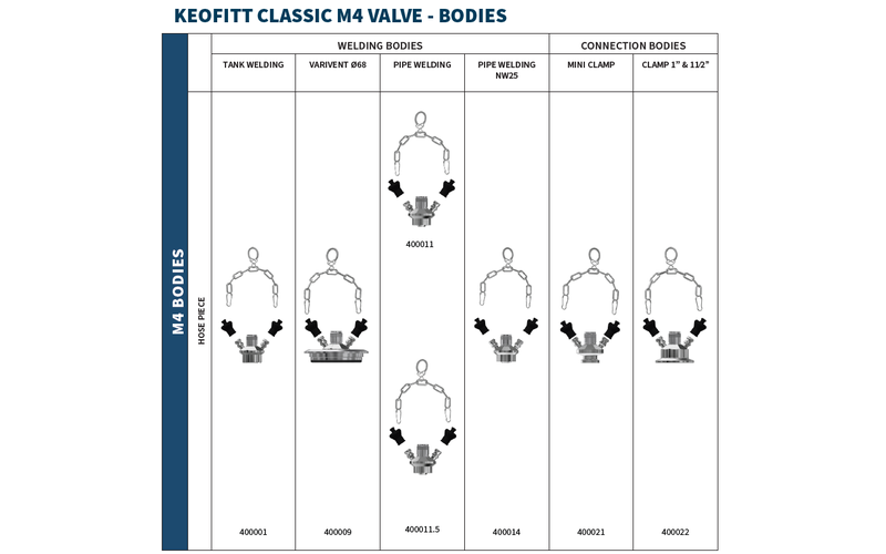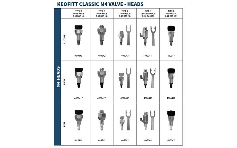 HD Process supplies the full Keofitt M4 range, including valve bodies, heads, membranes, and accessories designed for 1-100 cP with particles as big as 1.5mm.
