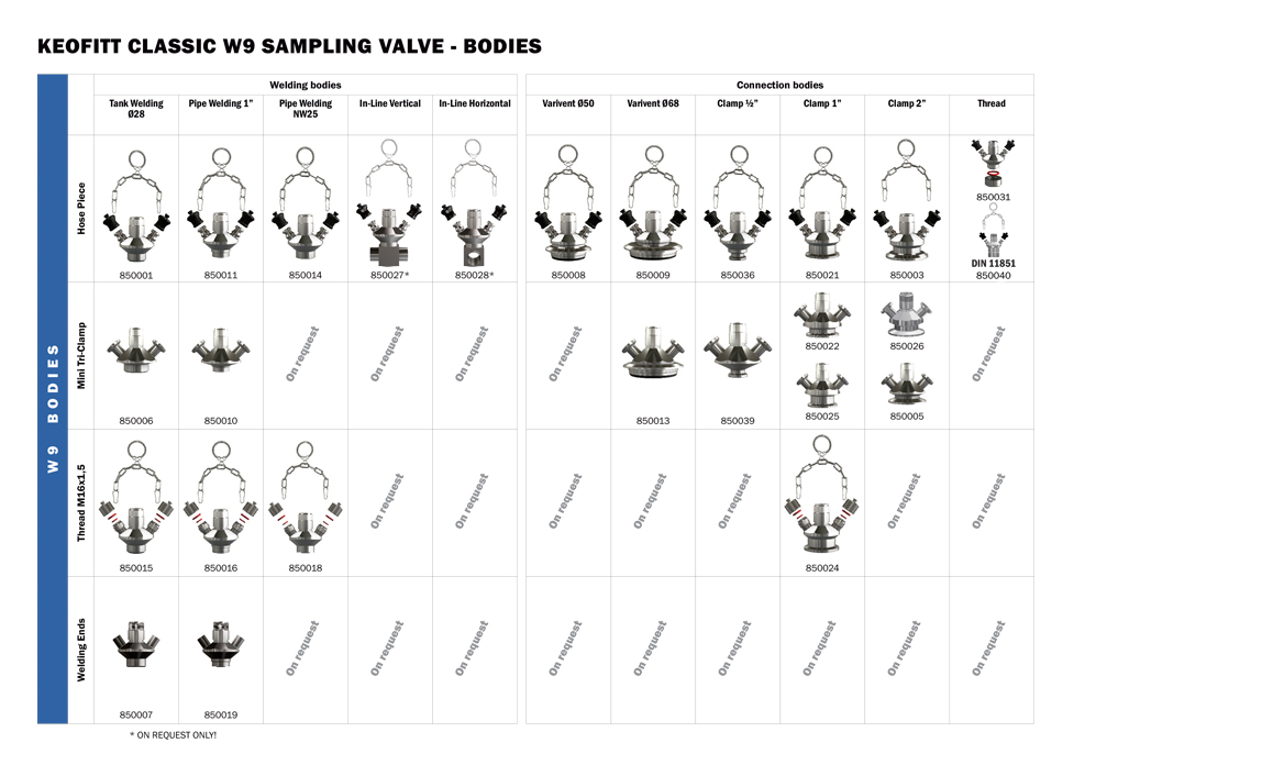HD Process are the official distributor for Keofitt products. The standard is the W9, engineered for hygienic and aseptic sampling, the W9 is the industry standard for low‑ to medium‑viscosity liquids. Its compact design, robust stainless‑steel construction, and membrane‑based aseptic barrier make it a trusted choice for process lines where sample integrity matters.