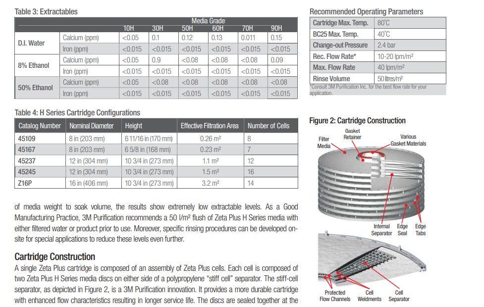 • No adverse effects to filter sheets when in contact with hot (up to 80C) sanitization or process filtration