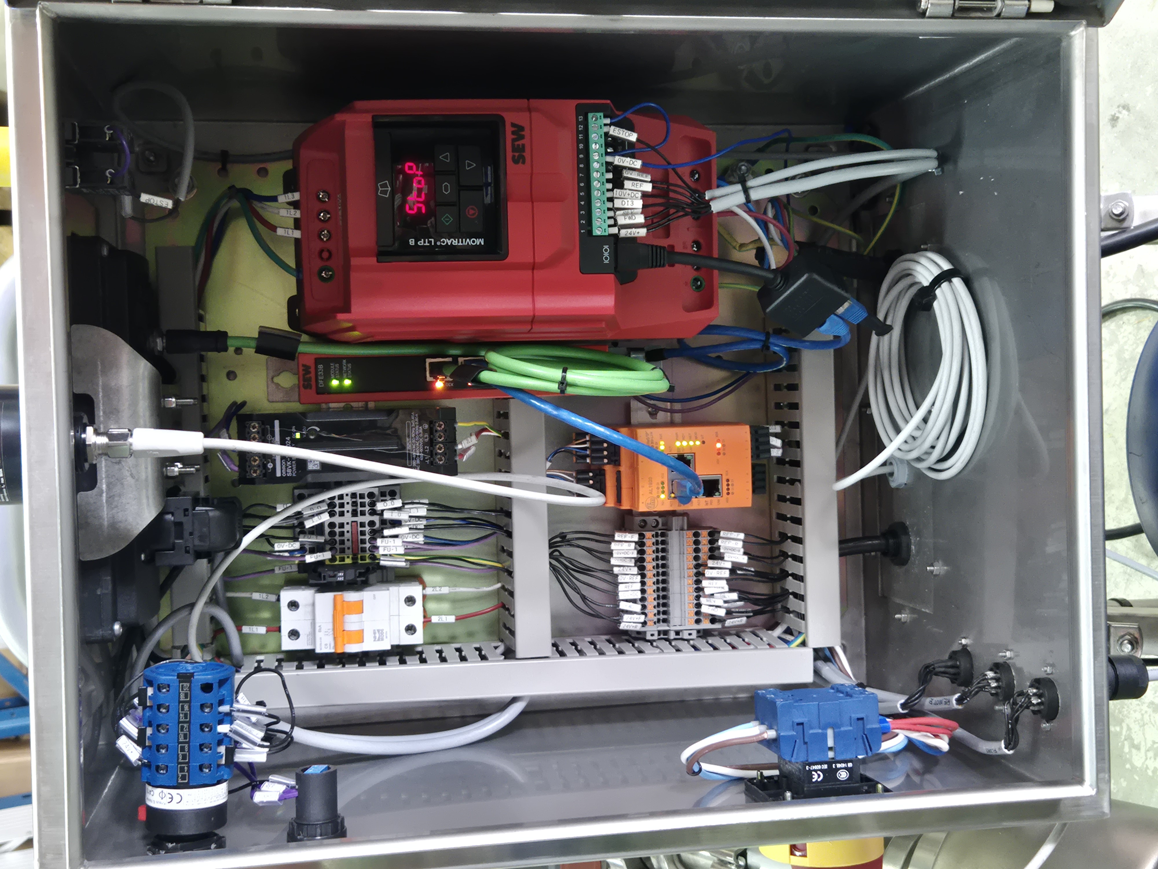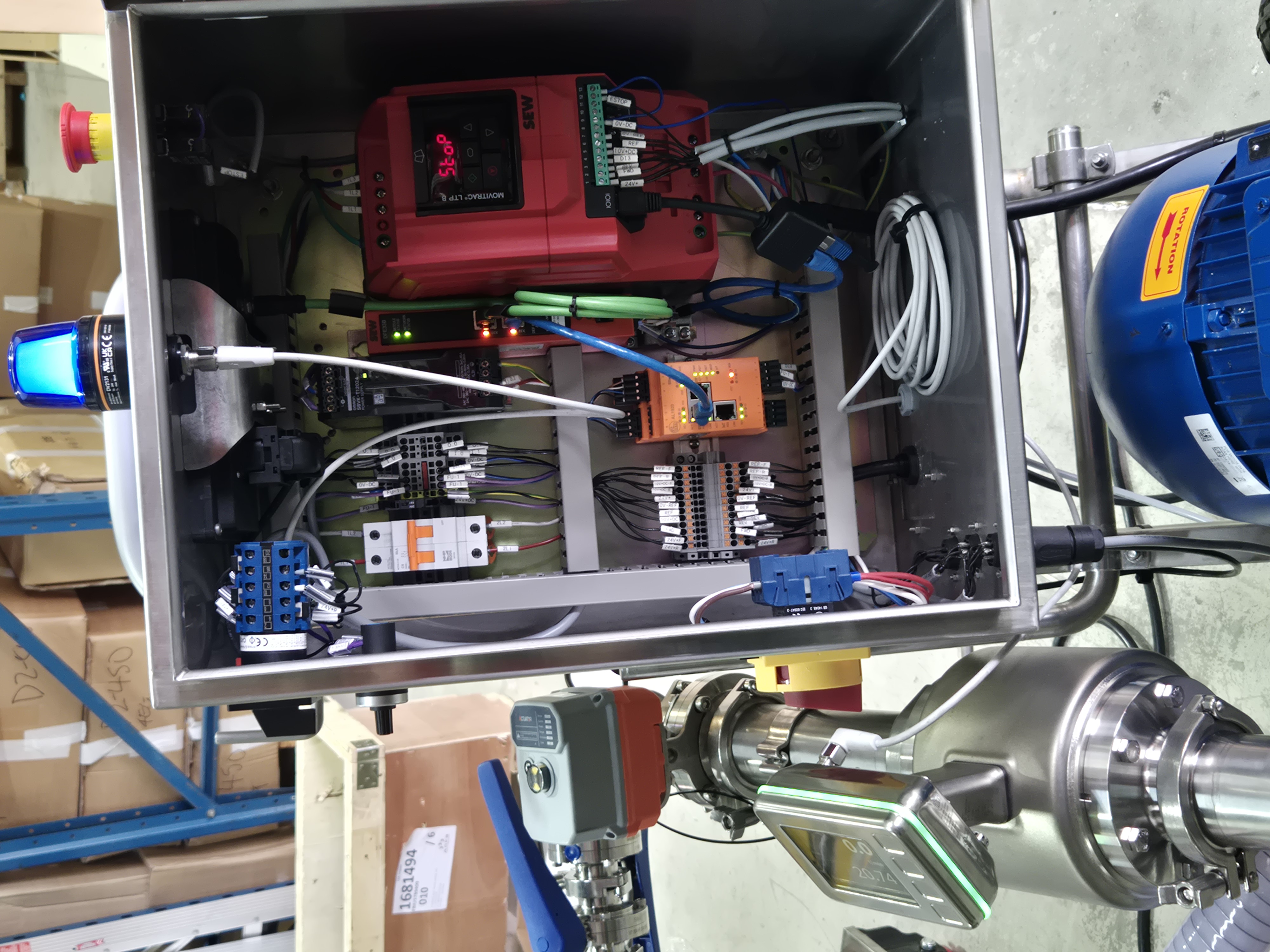 This particular (3”, 7.5kW CS65-145 CSF) trolley mounted centrifugal pump originally had a remote pendant control along with local potentiometer control and the ability to integrate to an analog float.