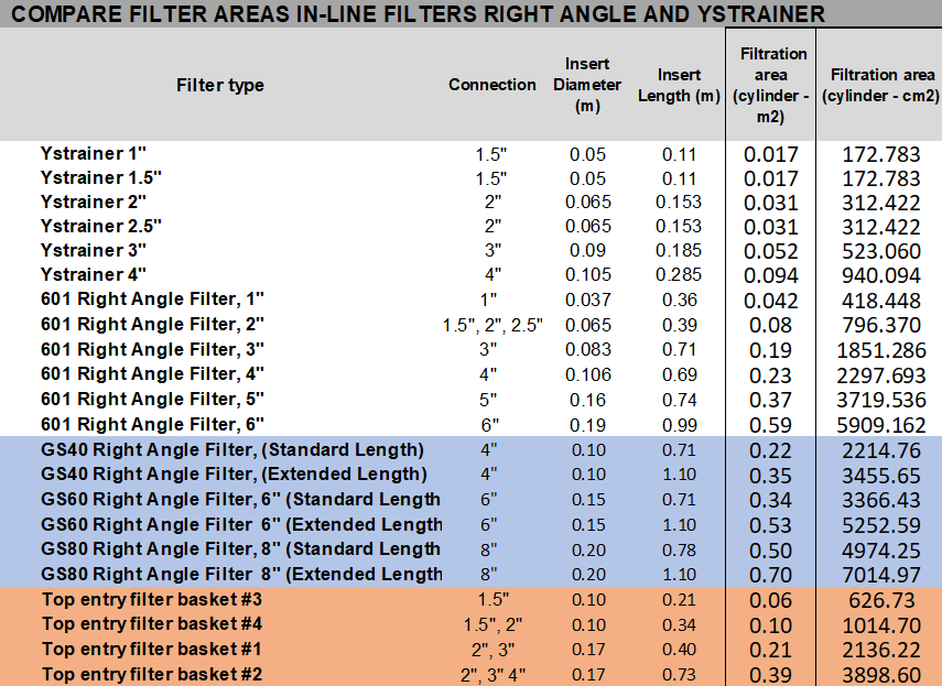 HD process supply Y-strainer angular filters in various sizes with various perforated plate apertures.